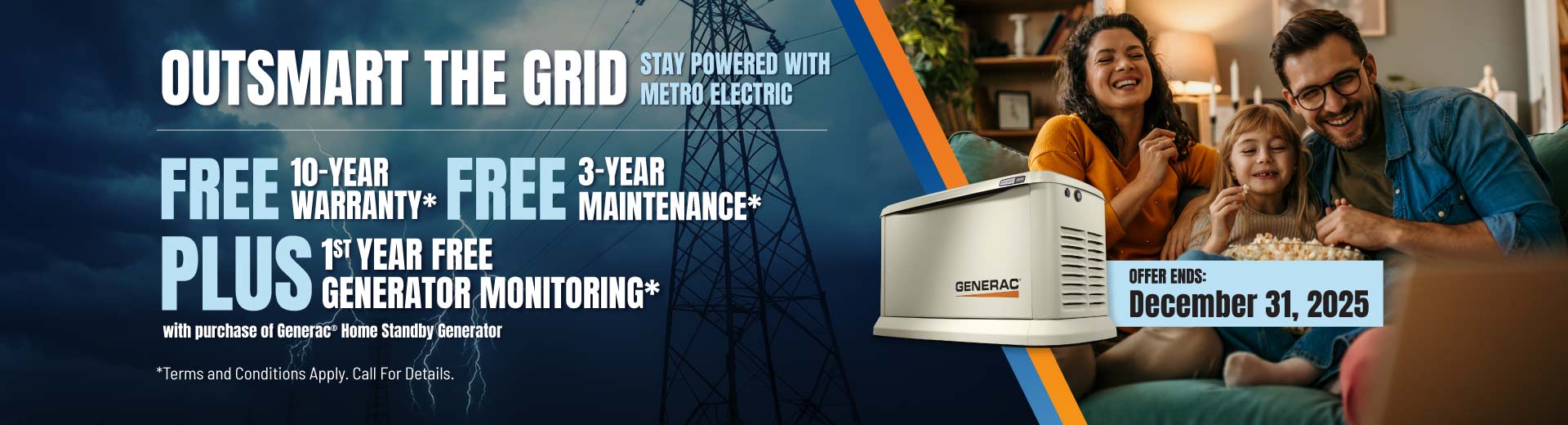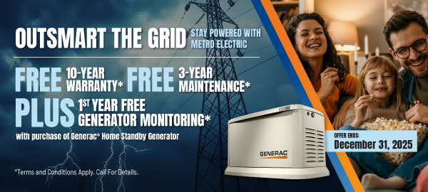 I just had a Generac standby generator installed by the very efficient and friendly Metro Electric technicians. This process was a snap from start to finish. From my first call to get a quote to the final installation everyone at Metro Electric was friendly, knowledgeable, and professional. They arrived on time and did a great job. I would highly recommend Metro Electric for your home electrical needs.